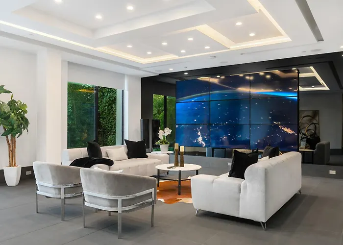 Die Villa Ultra Luxury 5Br Beverly Hills Estate With Private Pool Spa And Canyon Views Los Angeles liegt rund 7 Kilometer von den La Brea Teergruben entfernt und bietet Gästen einen Jacuzzi und eine Sauna, die für einen entspannten Aufenthalt sorgen. Die Villa befindet sich ca. 15 Autominuten vom Pacoima Dam entfernt und verfügt über eine Terrasse.